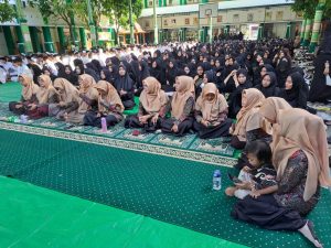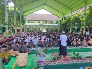 Acara menjadi semakin syahdu saat Kakanwil mengajak seluruh siswa dan siswi melantunkan salawat bersama. Lantunan salawat yang menggema di aula menciptakan atmosfer kebersamaan dan religiusitas yang mendalam.
